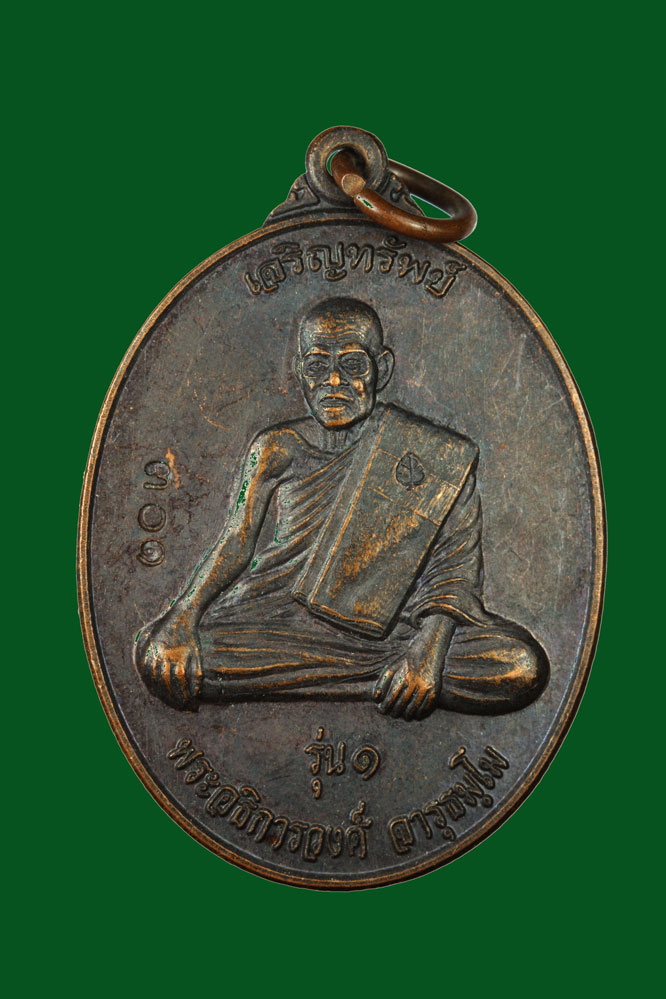เหรียญเจริญทรัพย์ พระอธิการวงศ์ วัดบ้านบุญเรือง พะเยา สร้างปี2556 ตอกโค๊ตใบไม้ ตอกหมายเลข 301